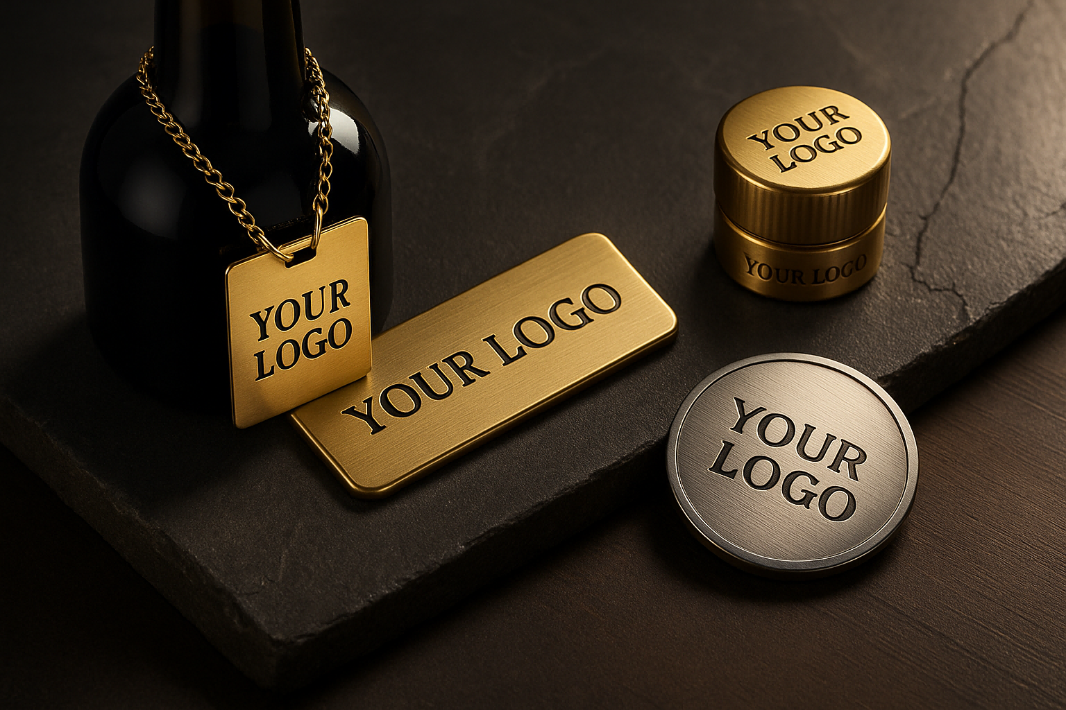 ButtonArea (un marchio WYSE) offre una gamma completa di accessori metallici personalizzati per il packaging di vini e liquori. Dai ciondoli per il collo della bottiglia alle targhette, fino ai tappi personalizzati con il logo del marchio, offriamo valore estetico e funzionale con quantitativi minimi d'ordine ridotti e consegne rapide in tutto il mondo.